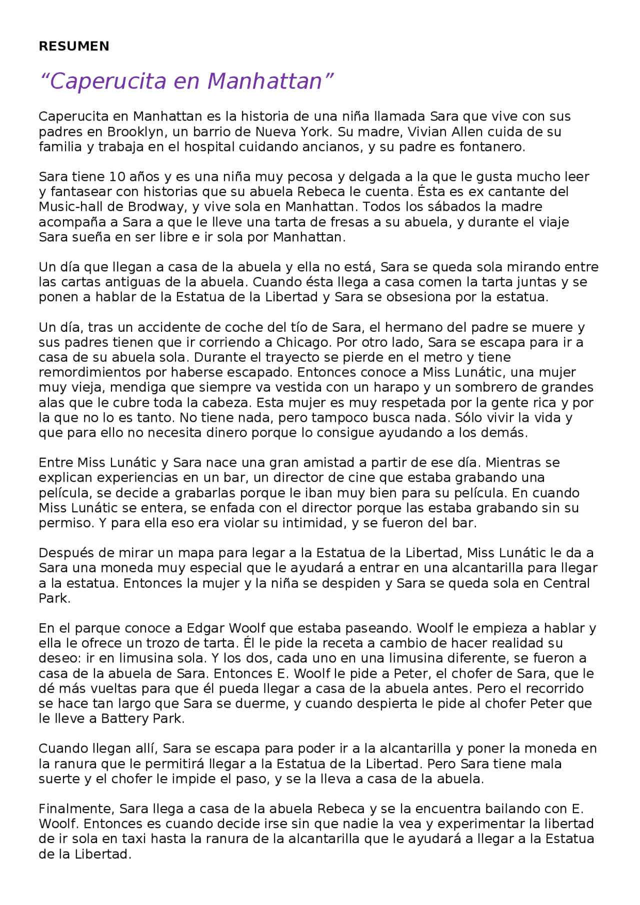 Resumen y personajes de Caperucita en Manhattan 📕 https://resumen.club/caperucita-en-manhattan/Caperucita en Manhattan es una obra literaria publicada por C.