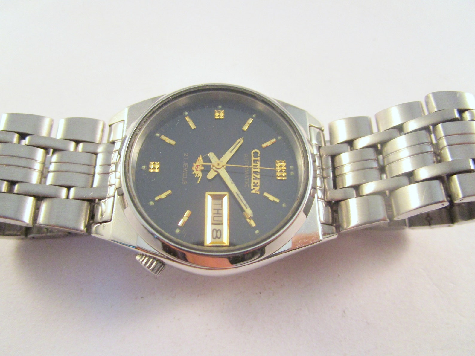 Citizen produced a whole range of stylish dress watches back in the 70s and 80s with a 21 jewel automatic movement. In fact, they are one of the few Citizen Automatic watches around.. They have since become known a the Eagle 7 because of the Citizen eagle logo at the bottom of the dial, with a red 7 emblazoned in the middle of the eagle.