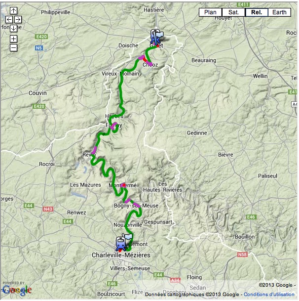 France. 0324560608. FICHIER KML A TELECHARGER. Parcourez la Grande Boucle des Ardennes ! Profitez des routes sinueuses des Vallées de la Meuse et de la Semoy. Flirtez avec la frontière Franco-Belge. Laissez-vous tenter par le charme des villes et villages de caractère pour des étapes inoubliables. Jour 1 - 207 km : Débutez votre circuit.
