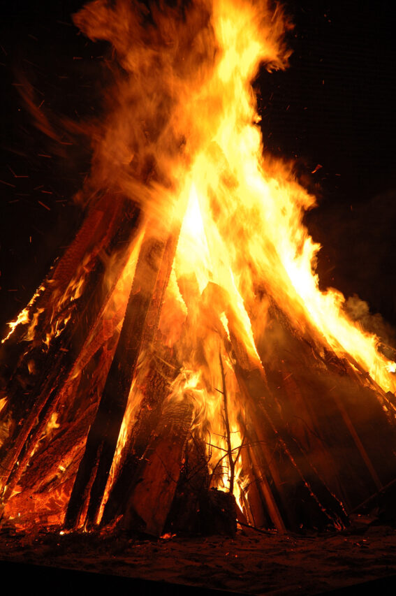 Les grands feux de joie de la Saint-Jean contiennent l'ADN de cette fête. Allumé à la tombée de la nuit, visible de loin, le bûcher embrasé peut prendre des proportions impressionnantes.