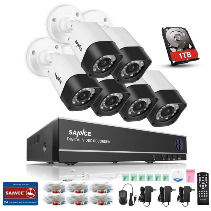 Kit vidéo surveillance extérieur 8CH 1080N DVR+6 caméra filaire HD 720P vision nocturne 20m