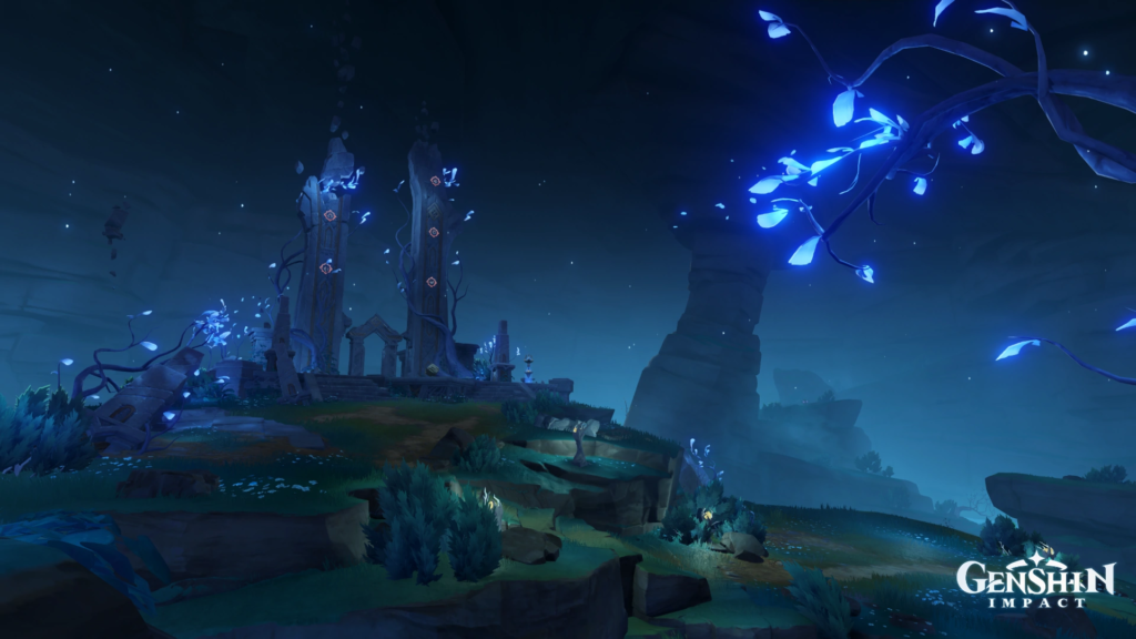 Avoir terminé la quête du monde « Le flot des eaux calmes » et « Les profondeurs baignées de lune » Enkanomiya se situe sous l'île de Watatsumi. Il n'y a donc aucune lumière du soleil qui arrive dans ces abysses. Le cycle jour/nuit n'existe pas mais certains mécanismes permettent de changer la lumière.