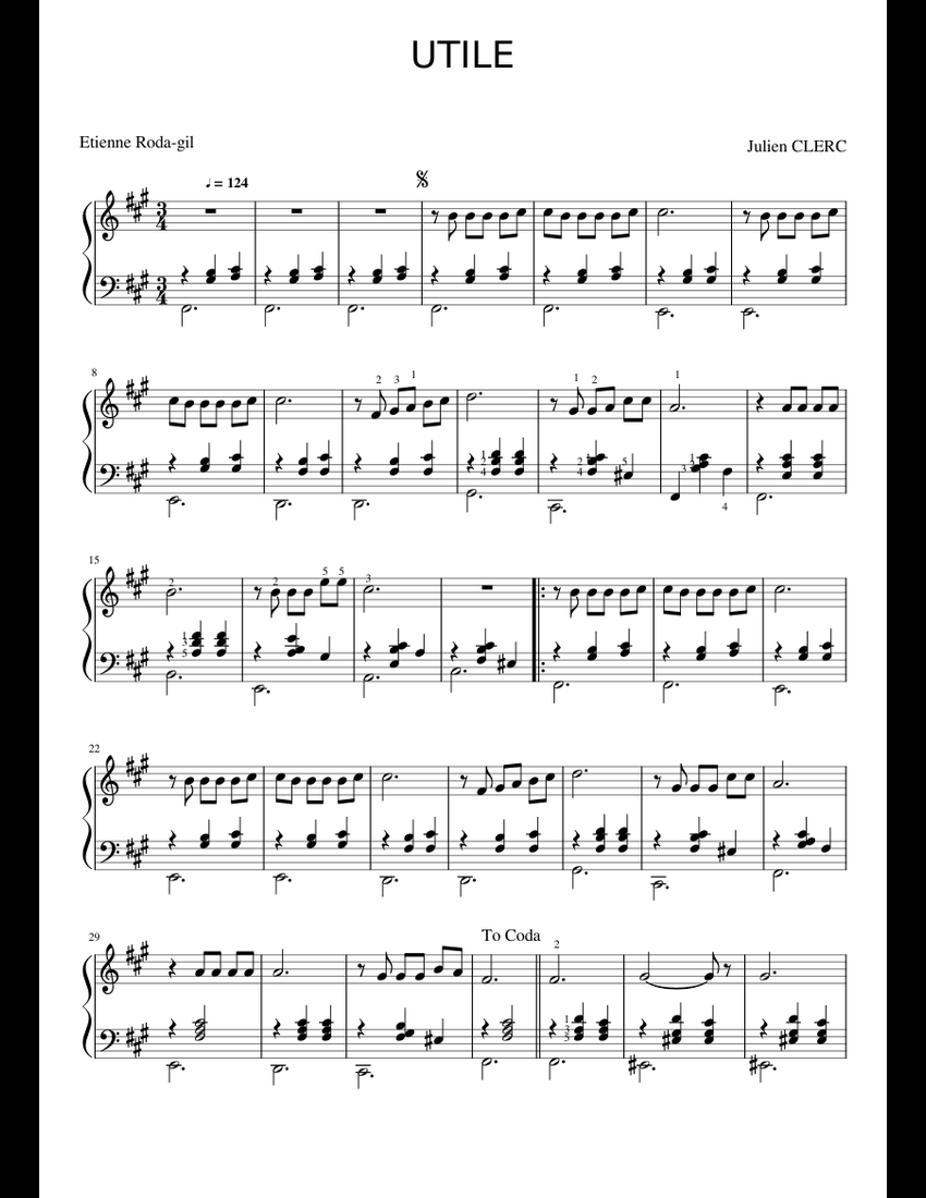 UTILE de Julien Clerc sheet music for Piano download free in PDF or MIDI