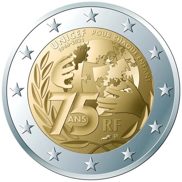PIECE 2 EUROS commémorative 75 ans de l'Unicef FRANCE 2021 EUR 4,00 PicClick FR