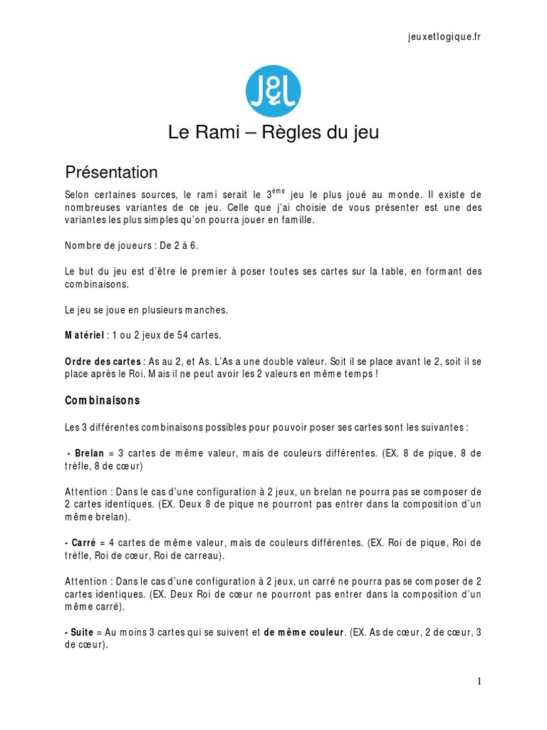 Le Rami Regles Du Jeu PDF Rami Jeux de table