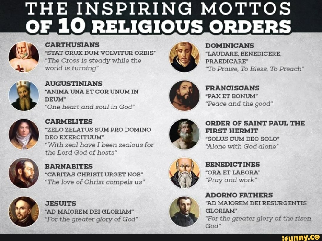 The INSPIRING MOTTO OF 10 RELIGIOUS ORDERS CARTHUSIANS DOMINICANS STAT CRUX DUM VOLVITUR ORBIS