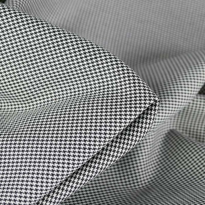 Tissu polyviscose pied-de-poule noir - blanc. Référence :20324. Le motif pied-de-poule est emblématique, et encore très tendance aujourd'hui. Bicolore noir et blanc, ce tissu vous propose une version classique et très élégante de l'imprimé. Tissu en polyester et viscose, un alliage qui lui confère un toucher doux et une très belle.