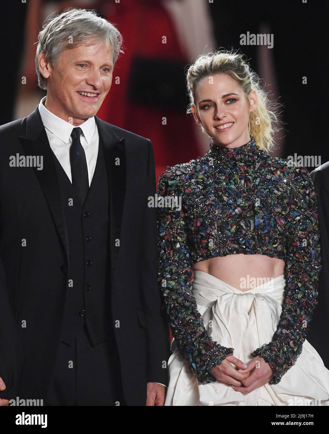 Cannes, France. 23rd May, 2022. American actor Viggo Mortensen and actress Kristen Stewart